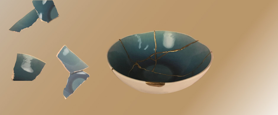 Jede wiederhergestellte Schale zeigt: Ich bin gebrochen, an verschiedenen Stellen. Ich habe vieles überstanden. Es hat Mühe und Zeit gekostet, wieder ganz zu werden, wieder neu gefüllt werden zu können. Aber genau das macht mich einzigartig.